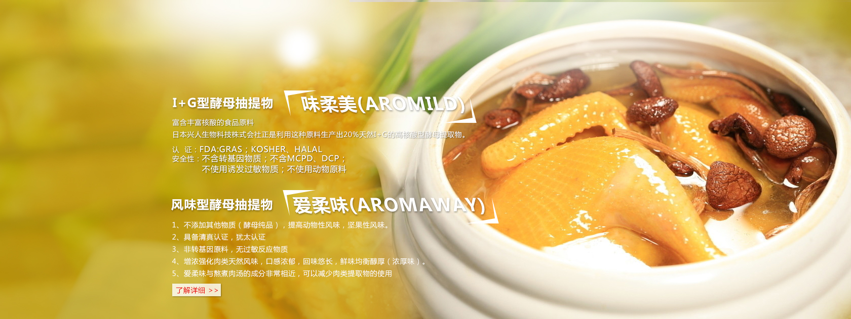 水解動植物蛋白系列(HVP&HAP) 復合調(diào)味料系列--酵母精、酵母抽提物 復合調(diào)味料系列--鮮味基礎調(diào)味料 復合調(diào)味料系列--海鮮風味 復合調(diào)味料系列--畜禽風味 復合調(diào)味料系列--和風調(diào)味料 復合調(diào)味料系列--口酷味 復合調(diào)味料系列--餐飲外食 味淋料酒 可得然凝膠G 面包預拌粉 面包改良劑